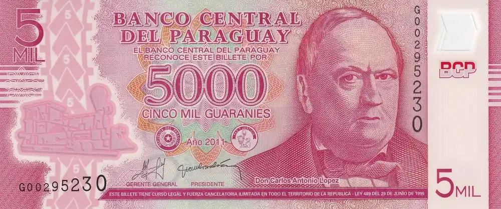 Livraison Mondiale Billet Paraguay 5000 Guaranies – Don C. A. Lopez – 2011 – Polymère – Série G – P.234a