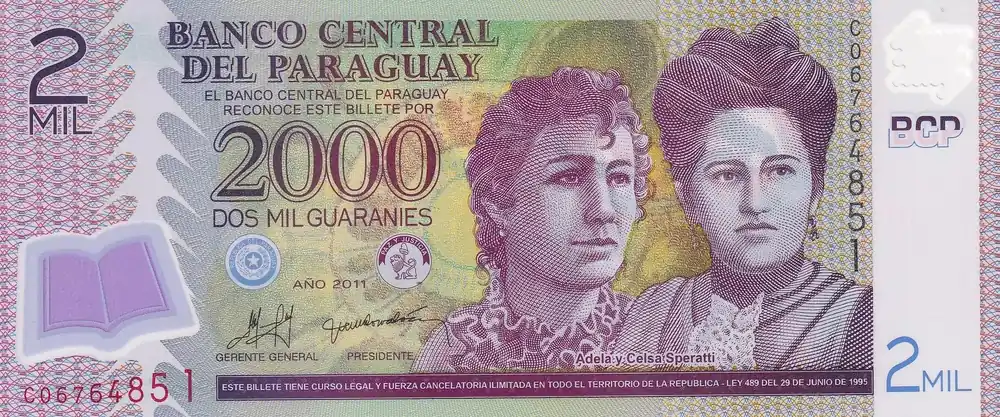 Exclusif Billet Paraguay 2000 Guaranies – Adela y Celsa Speratti – 2011 – Série C – P.228