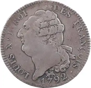 Constitution, écu de 6 livres FRANÇOIS, An 4, 2d semestre, 1792 Paris Dernier Modèle