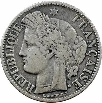 IIe République, 2 francs Cérès, 1851 Paris Fait Main