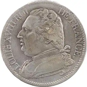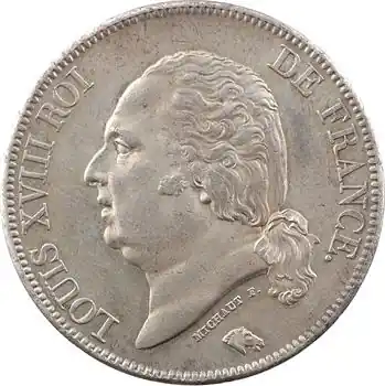 Louis XVIII, 5 francs buste nu, 1822 Paris Top Vente