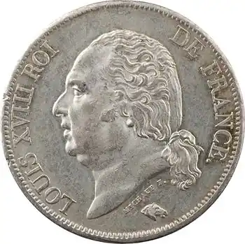 Louis XVIII, 5 francs buste habillé, 1815 Paris Livraison Express