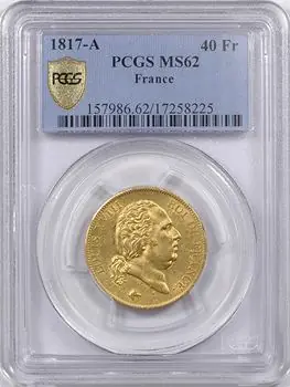 Louis XVIII, 40 francs, 1817 Paris, PCGS MS62 Prix Cassé
