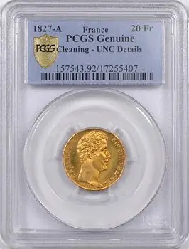 Charles X, 20 francs, 4 feuilles et demie, 1827 Paris, PCGS UNC details Nouvel Arrivage