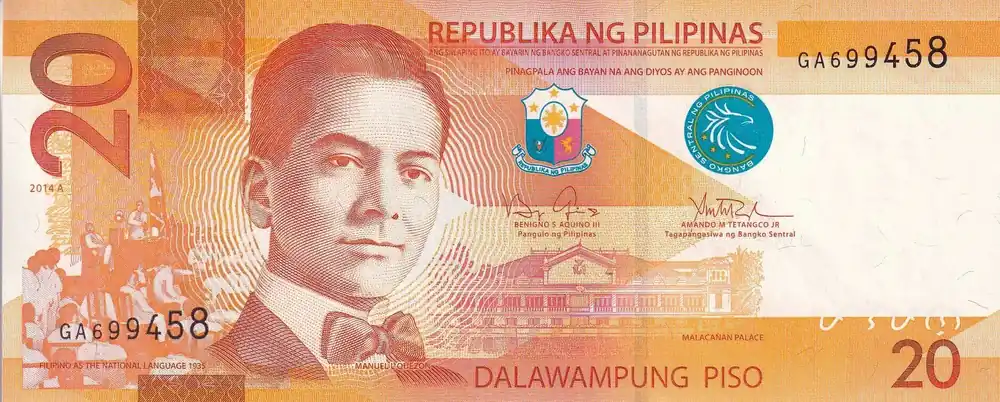 Original Billet Philippines 20 Piso – M.L. Quezon – Civette – 2014 A – Série GA – P.206a