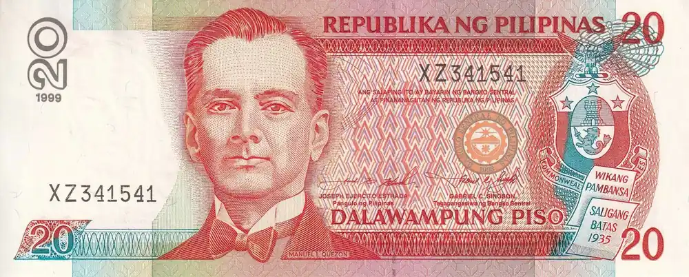 Billet Philippines 20 Piso – M.L. Quezon – Palais – ND (1998-1999) – Série XZ – P.182c Quantité Limitée