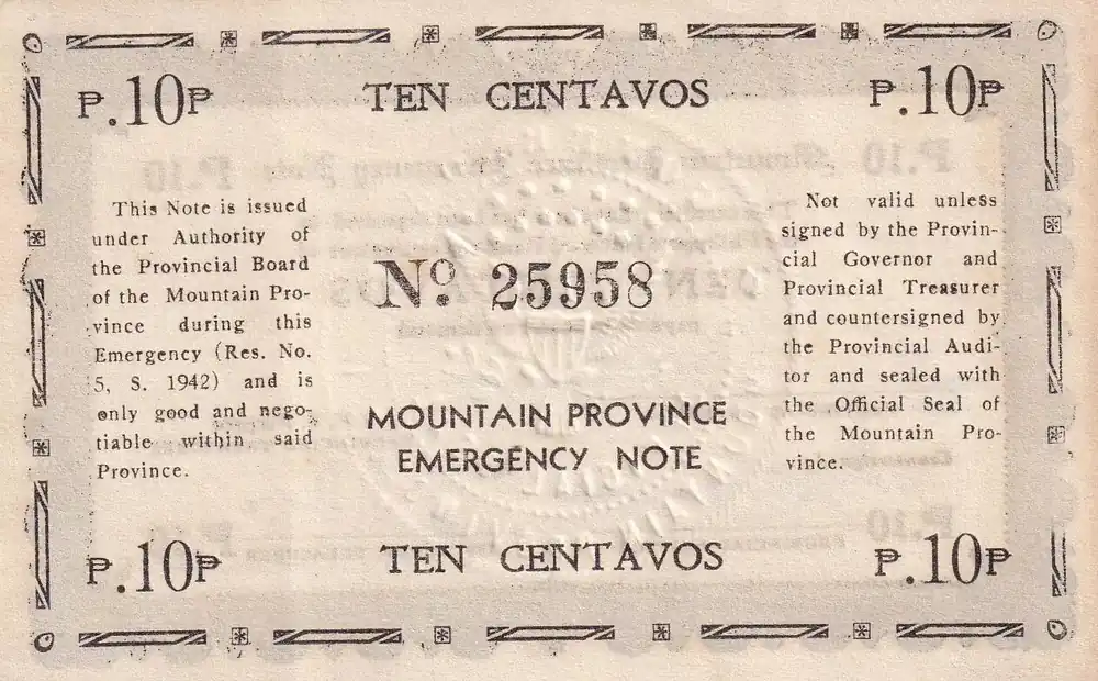 Commander Vite Billet Philippines 10 Centavos – Mountain – 1942 – P.S592