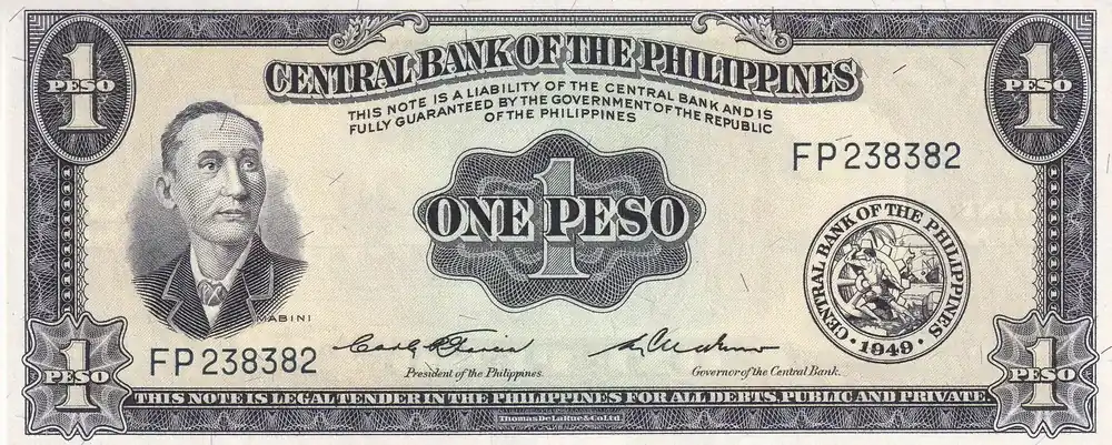 Original Billet Philippines 1 Peso – Mabini – Eglise – Série FP – 1949 – P.133