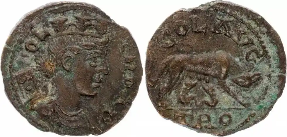 Soldes Rome – Provinces 1 As, Alexandrie (Troade) – Tychè, Louve Romulus et Rémus (250-268)