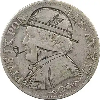 Vatican, Pie IX, 1 lire satirique au chapeau et à la pipe, 1867/XXI Rome Petit Prix