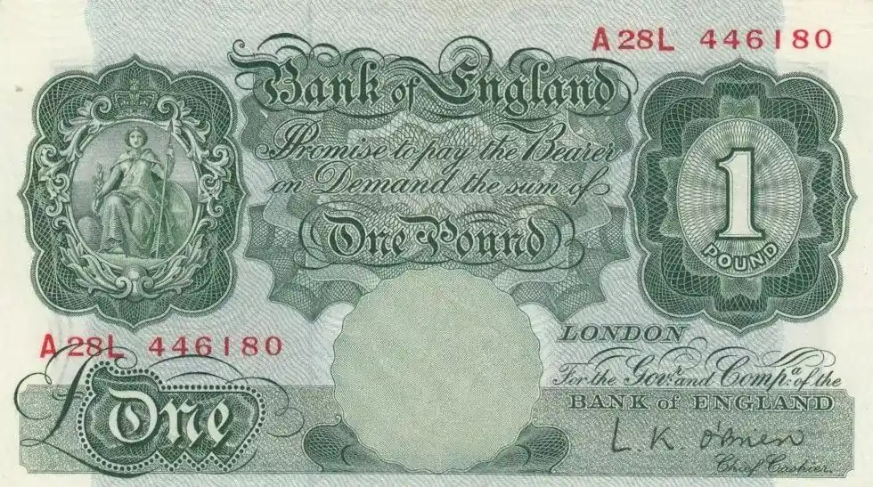 Super Prix Billet Royaume-Uni 1 Pound Britannia – Série A28L – 1955/1960