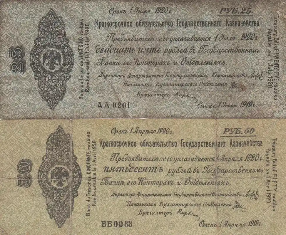 Dernier Modèle Billet Russie Série 25 et 50 Roubles – 1920