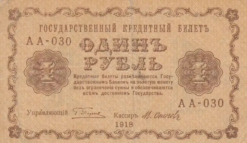 Gros Lot Billet Russie 1 Rouble – Trésor – 1918 – P.86a – Série AA-030
