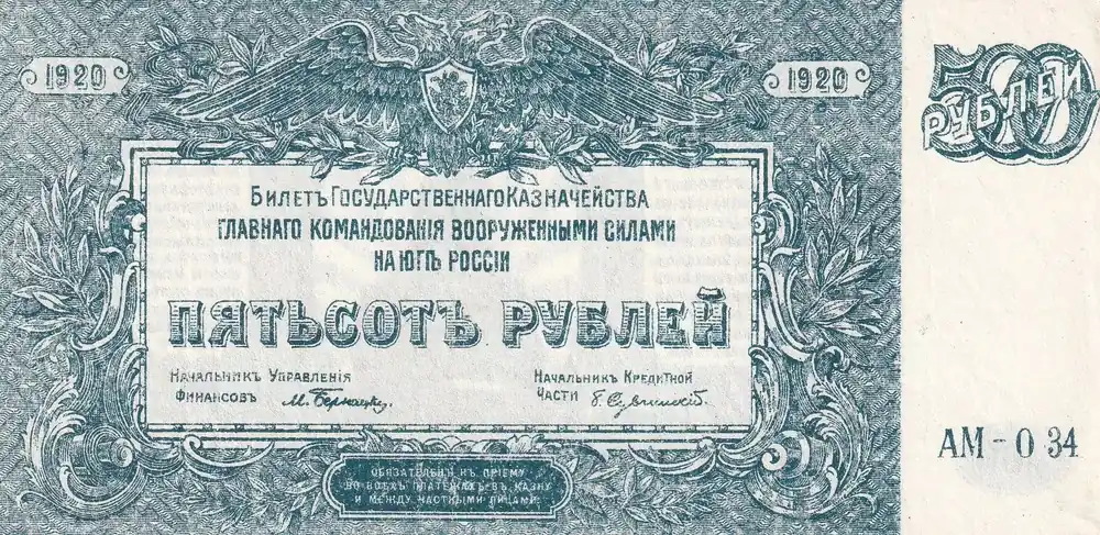 Exclusif Billet Russie 500 Roubles – Sud Russie – 1920 – P.S434