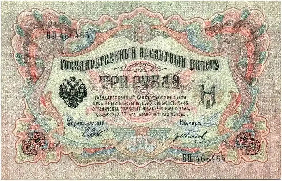 Billet Russie 3 Roubles Aigle impérial – 1905 Sign. Shipov (1912-1919) Certifié