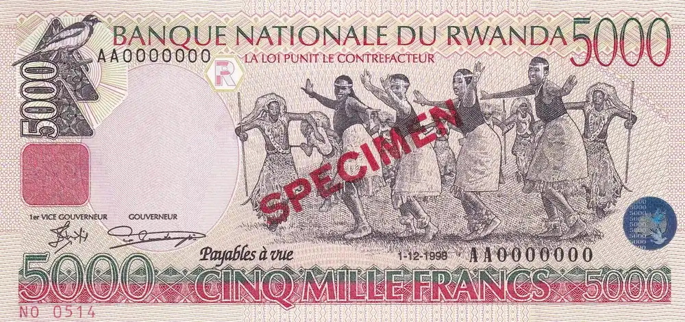 Achat Immédiat Billet Rwanda 5000 Francs Danseurs africains – Banque Nationale – 1998