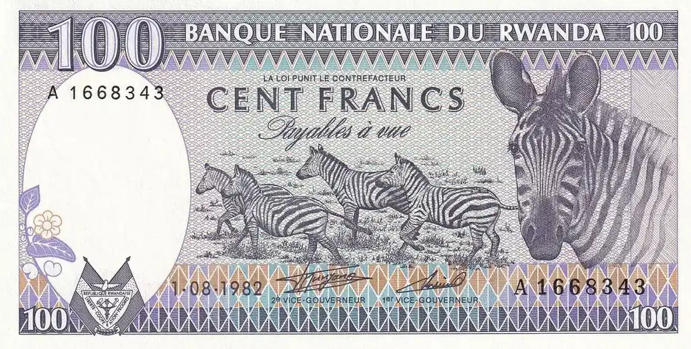 Billet Rwanda 100 Francs – Zèbres – 1982 – P.18 Offre Exclusive