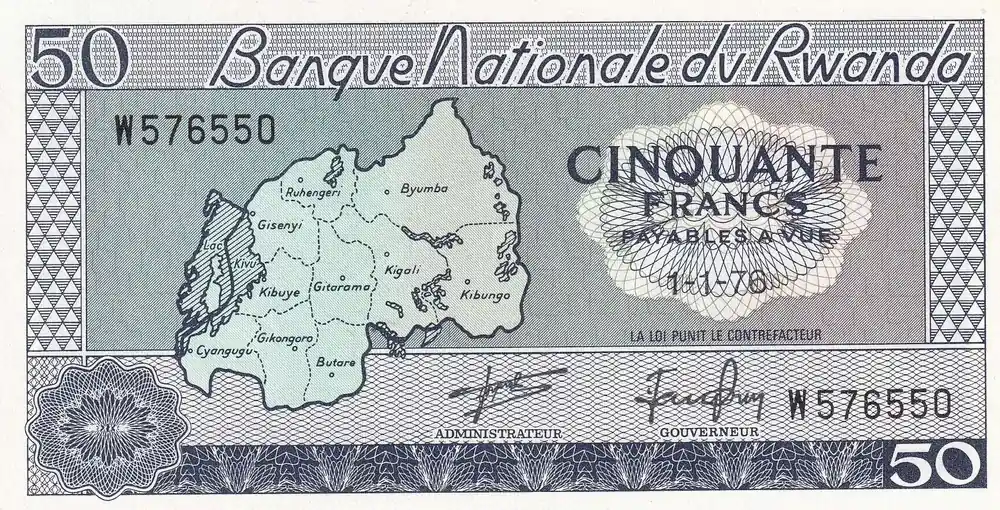 Paiement Sécurisé Billet Rwanda 50 Francs – Carte du Rwanda – Mineurs – 1976 – P.7c
