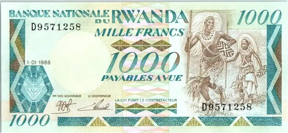 Soldes Billet Rwanda 1000 Francs – Danse – Gorilles – 1988 – P.21