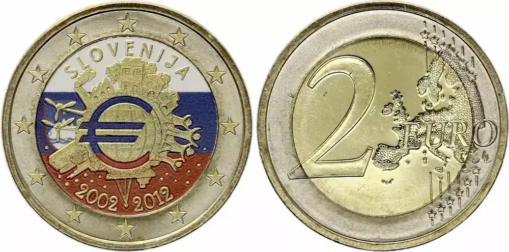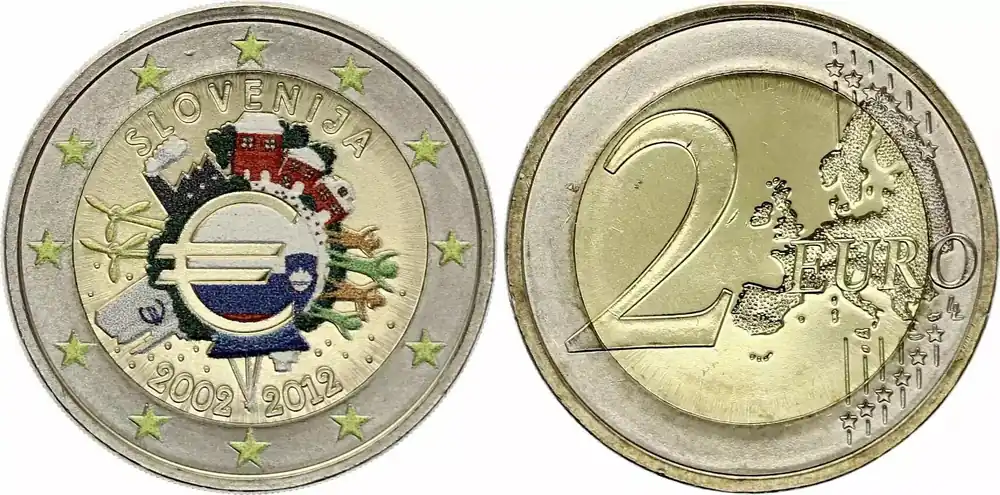 Livraison Mondiale Slovénie 2 Euros – 10 ans de l’Euro – Colorisée – 2012