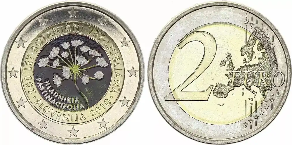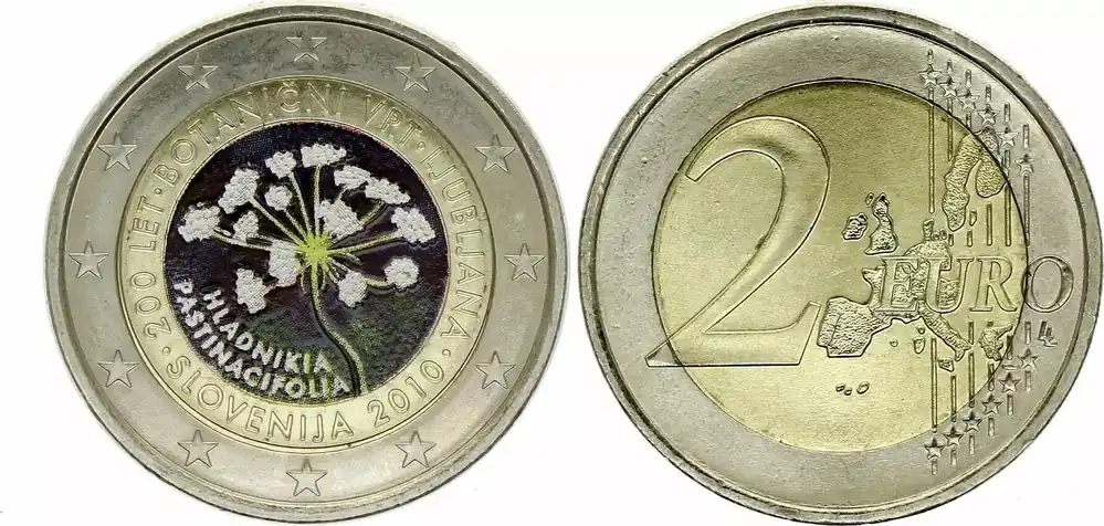 Slovénie 2 Euros – Jardin Botanique de Ljubljana – Colorisée – 2010 Retour Gratuit