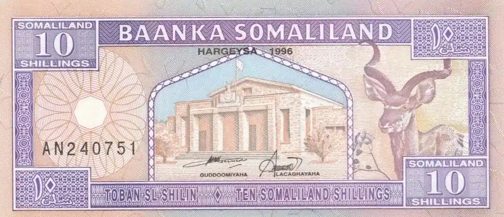 Offre Spéciale Billet Somaliland 10 Shillings Grand Koudou – Caravanne et chameaux – 1994