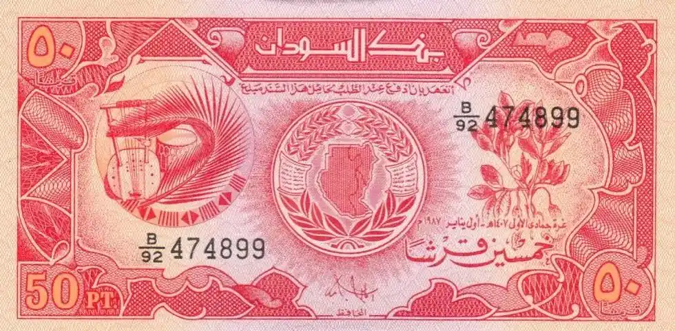 Nouvel Arrivage Billet Soudan 50 Piastres Fleurs – Banque Centrale – 1987
