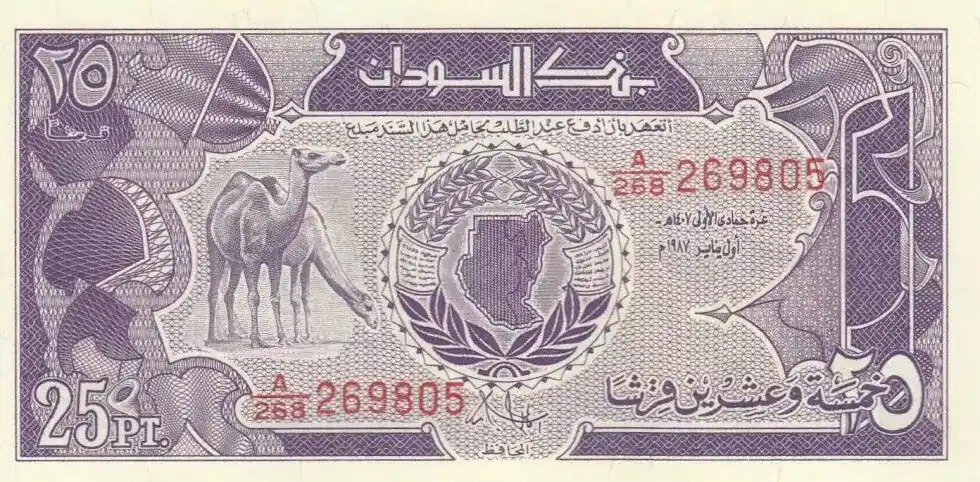 Prix Bas Billet Soudan 25 Piastres Chameaux – Banque Centrale – 1987