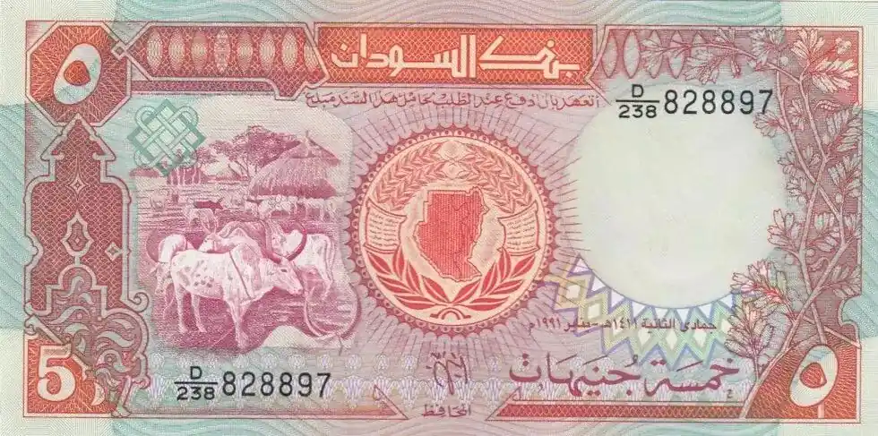 Billet Soudan 5 Pounds Bovins 1991 – Banque du Soudan Promotion