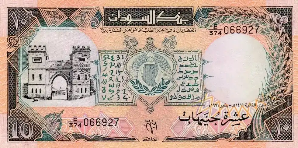 Billet Soudan 10 Pounds Porte Ville ancienne – Banque Centrale – 1991 Remise