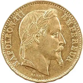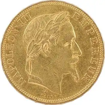 Livraison Gratuite Second Empire, 20 francs tête laurée, grand BB, 1869 Strasbourg