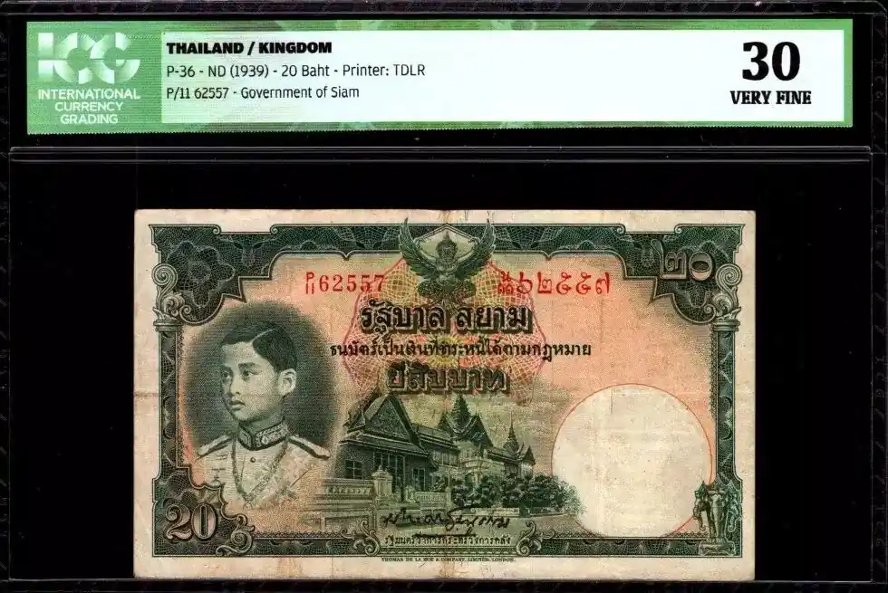 Billet Thaïlande 20 Baht Roi Rama VIII – Temple – ICG VF 30 – 1939 Nouvelle Collection