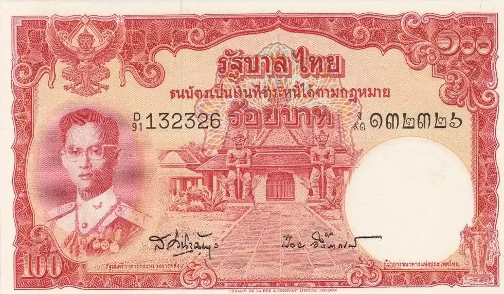 Billet Thaïlande 100 Baht Rama IX – Temple de Dawn – 1955 Sign. 41 Top Qualité
