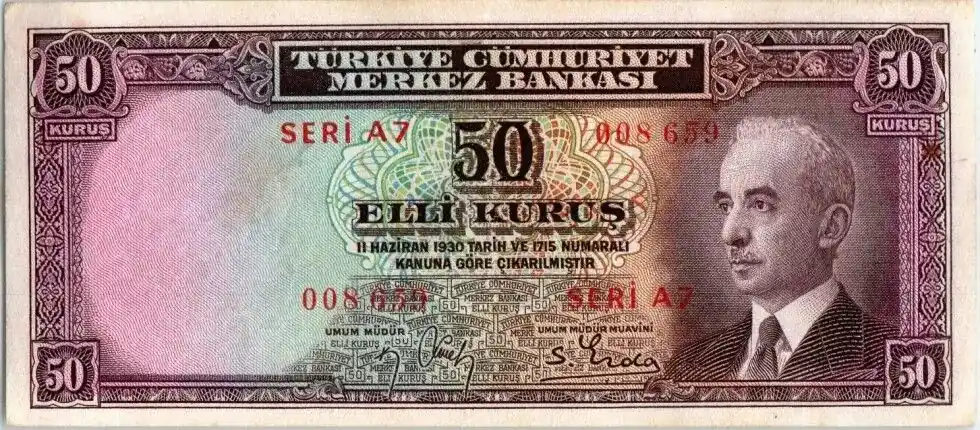 Livraison Express Billet Turquie 50 Kurush Pdt L. Inonu – Banque – 1942/44 (2em)