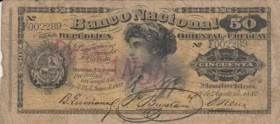 Billet Uruguay 50 Centimos Femme laurée – 25-08-1887 Must-Have