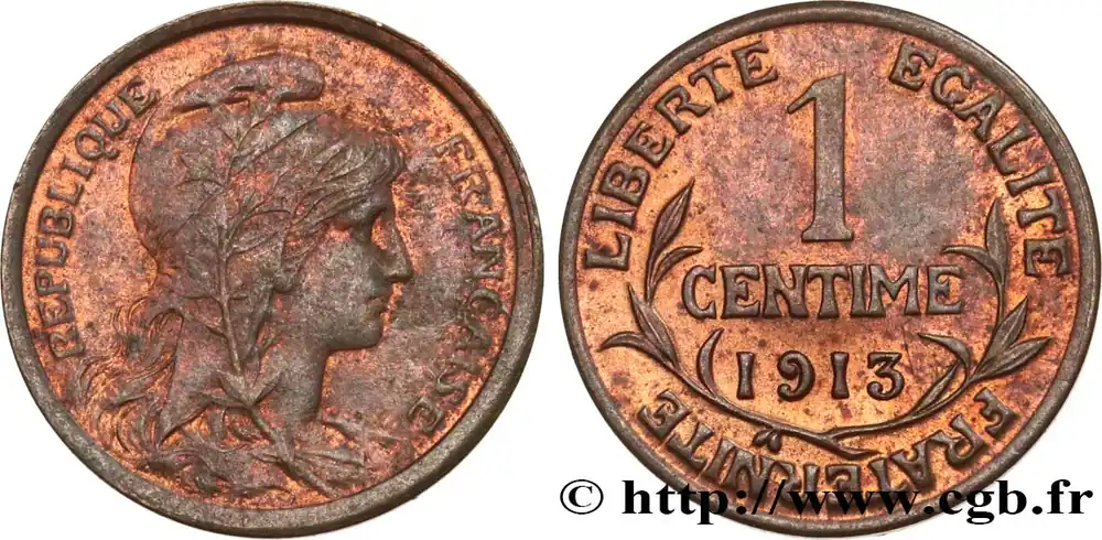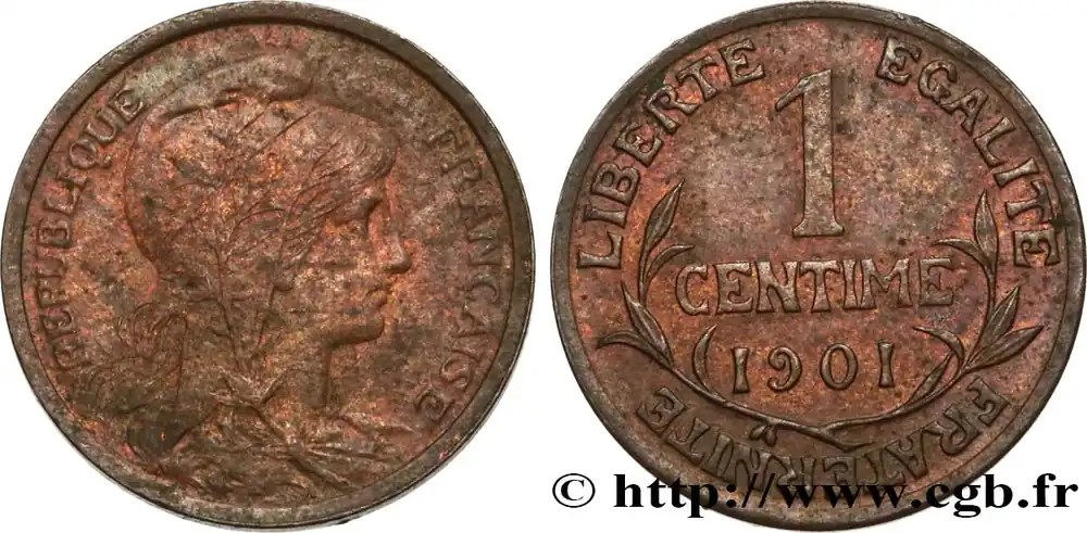 Type : 1 centime Daniel-DupuisDate : 1902Nom de l’atelier/ville : ParisQuantité frappée : 1000000Métal : bronzeDiamètre : 15 mmAxe des coins : 6 h.Poids : 0,98 g.Tranche : lisseRéférence ouvrage :Classement FRANC 2023 / FRANC 2023 classificationF.105/7AversTitulature avers : REPUBLIQUE – FRANÇAISE.Description avers : Buste de la Liberté à droite, coiffée du bonnet phrygien orné d’une couronne ; signé au-dessous en creux DANIEL-DUPUIS.ReversTitulature revers : LIBERTE/ EGALITE/ FRATERNITE.Description revers : 1/ CENTIME/ (millésime) entouré d’une branche d’olivier.HistoriqueTROISIÈME RÉPUBLIQUE(4/09/1870-10/07/1940) La nouvelle de la capitulation de Sedan provoque la révolution du 4 septembre 1870 à Paris. Proclamée à l’Hôtel de Ville, la République est dotée d’un gouvernement provisoire appelé gouvernement de la Défense nationale. Menacé à gauche par l’insurrection de la Commune et à droite par les monarchistes, le nouveau régime connaît des débuts difficiles. Chef du pouvoir exécutif dans un premier temps (février 1871), Thiers est chargé de réorganiser le pays avant de choisir sa forme de gouvernement. Il devient président de la République en août 1871 et, malgré son action de libération du territoire, doit quitter son poste en mars 1873 face à l’opposition royaliste. Il est alors remplacé par Mac-Mahon favorable au rétablissement de la monarchie mais celle-ci n’est pas restaurée à la suite de la question du drapeau. La loi du septennat est alors mise en place en novembre 1873 puis, en 1875, sont votées les lois fondamentales qui servent de Constitution à la Troisième République. Régime parlementaire, elle se caractérise notamment par la nette prépondérance du pouvoir législatif sur le pouvoir exécutif. Anticléricale, la Troisième République rend l’école gratuite, laïque et obligatoire mais continue la politique coloniale pour ses ambitions économiques, stratégiques et morales. La séparation des Églises et de l’État est votée en 1905. L’idée d’une revanche sur l’Allemagne et un nationalisme important sont au cœur de la crise boulangiste, du scandale de Panama ou de l’affaire Dreyfus des années 1886-1899 tandis que la politique étrangère est très active notamment au Maroc et que la course aux armements se développe. La Première Guerre mondiale coûte cher à la France qui ne se relève qu’à partir de 1920 voire 1928 pour la monnaie avec le franc « Poincaré ». La crise de 1929 ne se fait sentir qu’à partir de 1932 mais dure jusqu’en 1939, période durant laquelle l’instabilité ministérielle est très importante. Vacillant en 1934, la Troisième République trouve un nouveau ciment unitaire avec l’antifascisme qui permet l’arrivée au pouvoir du Front populaire en 1936. Mais, paralysée face à l’Allemagne, la France va alors s’enliser dans une « drôle de guerre » puis connaître l’une des plus grandes défaites de son histoire en juin 1940. Réunies en Assemblée nationale à Vichy le 10 juillet 1940, les Chambres, pourtant élues en 1936, votent les pleins pouvoirs à Pétain dans une sorte de suicide collectif par 569 voix pour, 80 voix contre et 18 abstentions.