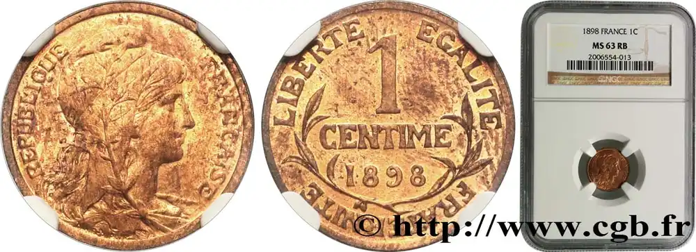 Type : 1 centime Daniel-DupuisDate : 1911Nom de l’atelier/ville : ParisQuantité frappée : 5000000Métal : bronzeDiamètre : 15 mmAxe des coins : 6 h.Poids : 1,00 g.Tranche : lisseCommentaires sur l’état de conservation :Défauts de laminage en surfaceRéférence ouvrage :Classement FRANC 2023 / FRANC 2023 classificationF.105/13AversTitulature avers : REPUBLIQUE FRANÇAISE.Description avers : Buste de la Liberté à droite, coiffée du bonnet phrygien orné d’une couronne; signé en creux DANIEL DUPUIS au-dessous.ReversTitulature revers : LIBERTE EGALITE – FRATERNITE// 1/ CENTIME/ 1911.Description revers : au-dessus d’une couronne.HistoriqueTROISIÈME RÉPUBLIQUE(4/09/1870-10/07/1940) La nouvelle de la capitulation de Sedan provoque la révolution du 4 septembre 1870 à Paris. Proclamée à l’Hôtel de Ville, la République est dotée d’un gouvernement provisoire appelé gouvernement de la Défense nationale. Menacé à gauche par l’insurrection de la Commune et à droite par les monarchistes, le nouveau régime connaît des débuts difficiles. Chef du pouvoir exécutif dans un premier temps (février 1871), Thiers est chargé de réorganiser le pays avant de choisir sa forme de gouvernement. Il devient président de la République en août 1871 et, malgré son action de libération du territoire, doit quitter son poste en mars 1873 face à l’opposition royaliste. Il est alors remplacé par Mac-Mahon favorable au rétablissement de la monarchie mais celle-ci n’est pas restaurée à la suite de la question du drapeau. La loi du septennat est alors mise en place en novembre 1873 puis, en 1875, sont votées les lois fondamentales qui servent de Constitution à la Troisième République. Régime parlementaire, elle se caractérise notamment par la nette prépondérance du pouvoir législatif sur le pouvoir exécutif. Anticléricale, la Troisième République rend l’école gratuite, laïque et obligatoire mais continue la politique coloniale pour ses ambitions économiques, stratégiques et morales. La séparation des Églises et de l’État est votée en 1905. L’idée d’une revanche sur l’Allemagne et un nationalisme important sont au cœur de la crise boulangiste, du scandale de Panama ou de l’affaire Dreyfus des années 1886-1899 tandis que la politique étrangère est très active notamment au Maroc et que la course aux armements se développe. La Première Guerre mondiale coûte cher à la France qui ne se relève qu’à partir de 1920 voire 1928 pour la monnaie avec le franc « Poincaré ». La crise de 1929 ne se fait sentir qu’à partir de 1932 mais dure jusqu’en 1939, période durant laquelle l’instabilité ministérielle est très importante. Vacillant en 1934, la Troisième République trouve un nouveau ciment unitaire avec l’antifascisme qui permet l’arrivée au pouvoir du Front populaire en 1936. Mais, paralysée face à l’Allemagne, la France va alors s’enliser dans une « drôle de guerre » puis connaître l’une des plus grandes défaites de son histoire en juin 1940. Réunies en Assemblée nationale à Vichy le 10 juillet 1940, les Chambres, pourtant élues en 1936, votent les pleins pouvoirs à Pétain dans une sorte de suicide collectif par 569 voix pour, 80 voix contre et 18 abstentions.