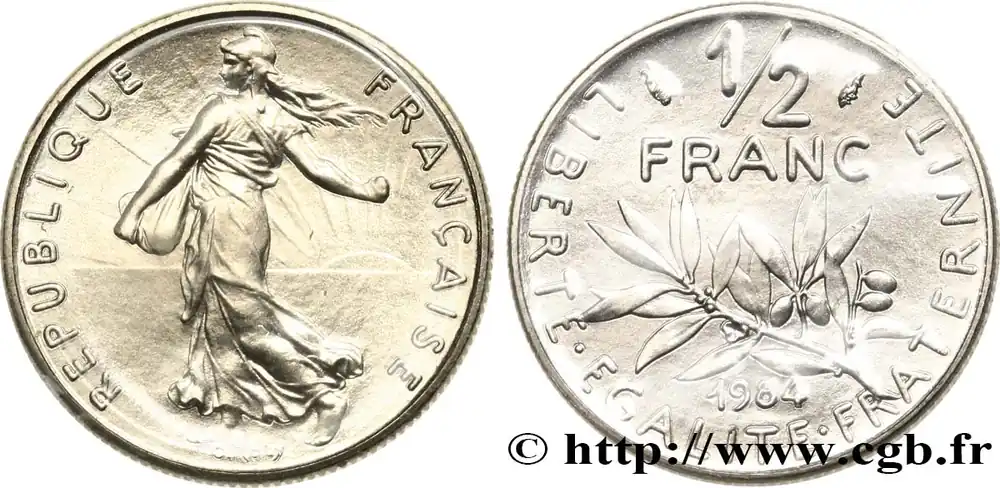 Type : 10 francs Mathieu, tranche ADate : 1982Nom de l’atelier/ville : PessacQuantité frappée : 73.311Métal : cupro-nickel-aluminiumDiamètre : 26 mmAxe des coins : 6 h.Poids : 10 g.Tranche : en creux. (branche de laurier) LIBERTE (branche d’olivier) EGALITE (épi) FRATERNITEDegré de rareté : R1Référence ouvrage :Classement FRANC 2023 / FRANC 2023 classificationF.365/10AversTitulature avers : REPUBLIQUE FRANÇAISE / 1982 ENCADRÉ DES DIFFÉRENTS.Description avers : Carte de France rayonnante avec au centre RF en majuscules entrelacées ; signé Mathieu dans le champ gauche.ReversTitulature revers : 10 FRANCS.Description revers : Représentations stylisées d’une France industrielle, formes de grues, de pylones et de bâtiments.CommentaireTranche lisible la carte de France l’avers vers le haut.HistoriqueCINQUIÈME RÉPUBLIQUE(depuis le 08/01/1959) La Cinquième République, dont la constitution a été approuvée par référendum le 28 septembre 1958 par plus de 79 % des Français, ne débute officiellement qu’avec l’installation du général de Gaulle comme président le 8 janvier 1959. La constitution est modifiée le 28 octobre 1962 par référendum où une majorité de 62 % des voix approuve l’élection du président de la République au suffrage universel direct. Les différents présidents de la Ve République sont Charles de Gaulle (8/01/1959 – 27/04/1969, retrait et Alain Poher devient président par intérim), Georges Pompidou (15/06/1969 – 2/04/1974, décédé, Alain Poher devient président par intérim), Valéry Giscard d’Estaing (19/05/1974 – 21/05/1981), François Mitterrand (21/05/1981 – 7/05/1995), Jacques Chirac (7/05/1995 – 16/05/2007) , Nicolas Sarkozy (16/05/2007 – 15/05/2012), François Hollande (15/05/2012 – 14/05/2017) et Emmanuel Macron (14/05/2017 – ).