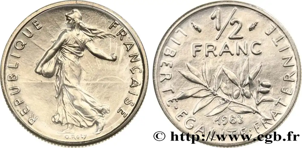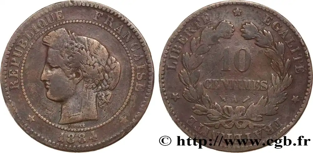 Type : 10 francs Mathieu, Tranche BDate : 1982Nom de l’atelier/ville : PessacQuantité frappée : —Métal : cupro-nickel-aluminiumDiamètre : 26 mmAxe des coins : 6 h.Poids : 10 g.Tranche : en creux. (branche de laurier) LIBERTE (branche d’olivier) EGALITE (épi) FRATERNITERéférence ouvrage :Classement FRANC 2023 / FRANC 2023 classificationF.365/10AversTitulature avers : REPUBLIQUE FRANÇAISE / 1982 ENCADRÉ DES DIFFÉRENTS.Description avers : Carte de France rayonnante avec au centre RF en majuscules entrelacées ; signé Mathieu dans le champ gauche.ReversTitulature revers : 10 FRANCS.Description revers : Représentations stylisées d’une France industrielle, formes de grues, de pylones et de bâtiments.CommentaireTranche B. Tranche lisible la valeur faciale le revers vers le haut.Exemplaire Fleur de Coin issu d’une série et encore sous plastique.HistoriqueCINQUIÈME RÉPUBLIQUE(depuis le 08/01/1959) La Cinquième République, dont la constitution a été approuvée par référendum le 28 septembre 1958 par plus de 79 % des Français, ne débute officiellement qu’avec l’installation du général de Gaulle comme président le 8 janvier 1959. La constitution est modifiée le 28 octobre 1962 par référendum où une majorité de 62 % des voix approuve l’élection du président de la République au suffrage universel direct. Les différents présidents de la Ve République sont Charles de Gaulle (8/01/1959 – 27/04/1969, retrait et Alain Poher devient président par intérim), Georges Pompidou (15/06/1969 – 2/04/1974, décédé, Alain Poher devient président par intérim), Valéry Giscard d’Estaing (19/05/1974 – 21/05/1981), François Mitterrand (21/05/1981 – 7/05/1995), Jacques Chirac (7/05/1995 – 16/05/2007) , Nicolas Sarkozy (16/05/2007 – 15/05/2012), François Hollande (15/05/2012 – 14/05/2017) et Emmanuel Macron (14/05/2017 – ).