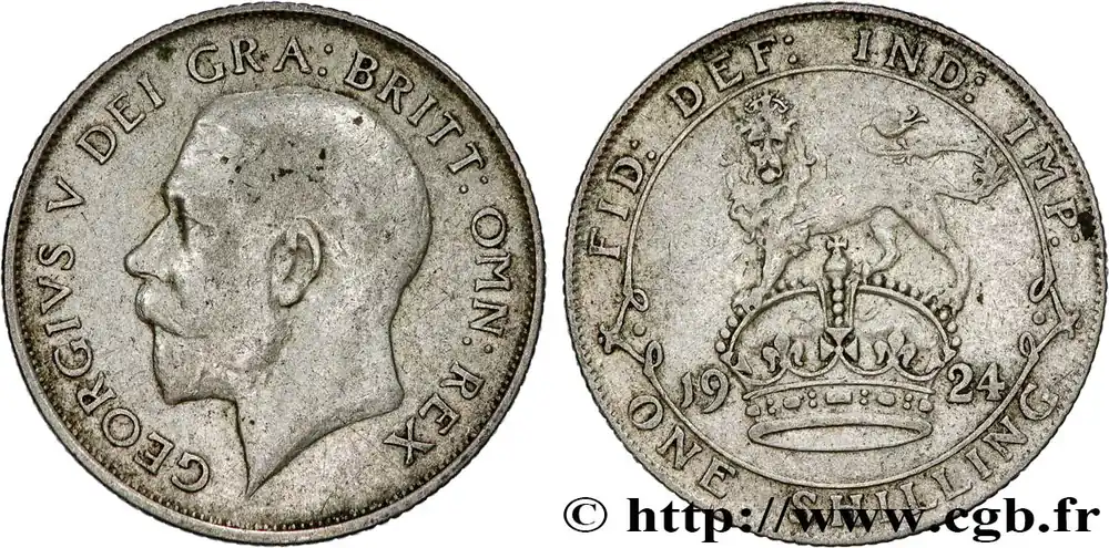 Type : 1 Shilling Georges VDate : 1935Quantité frappée : 9183000Métal : argentTitre en millième : 500 ‰Diamètre : 23,50 mmAxe des coins : 12 h.Poids : 5,57 g.Tranche : canneléeRéférence ouvrage :Sp.4039 – KM20/833 AversTitulature avers : GEORGIVS V DEI GRA:BRITT:OMN:REX.Description avers : portrait à gauche du roi Georges V.ReversTitulature revers : FID·DEF IND·IMP // ONE·SHILLING·1935.Description revers : lion à gauche surmontant une couronne.HistoriqueROYAUME-UNI