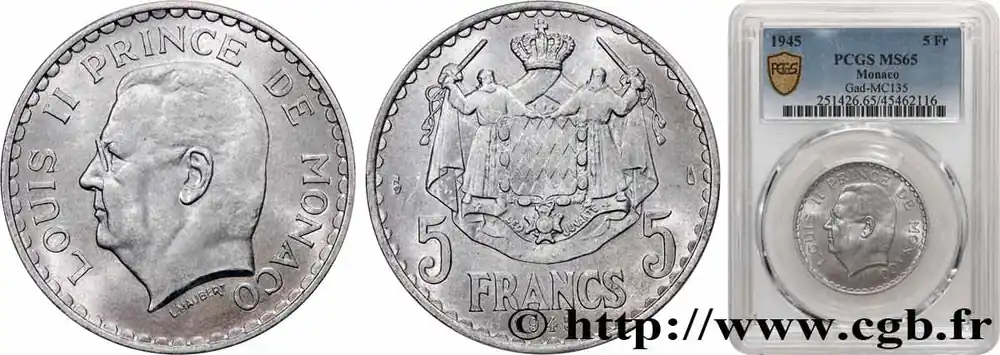 Type : 5 FrancsDate : 1991Nom de l’atelier/ville : ParisQuantité frappée : 2000000Métal : aluminiumDiamètre : 31,1 mmAxe des coins : 6 h.Poids : 3,75 g.Tranche : lisseRéférence ouvrage :KM20/21 AversTitulature avers : REPUBLIQUE DE DJIBOUTI // 1991.Description avers : emblème de la République de Djibouti.ReversTitulature revers : · UNITE ···EGALITE ··· PAIX · // 5 FR..Description revers : Tête d’antilope de face, un arbre du voyageur derrière, encadrée de poissons.HistoriqueDJIBOUTI(1977-) La République de Djibouti correspond à l’ancien territoire colonial français constitué autour du golfe de Tadjourah dans la corne de l’Afrique. Le territoire d’Obock et dépendances est constitué par la France en 1862. En 1896, le territoire est rebaptisé Côte française des Somalis puis en 1967 Territoire français des Afars et des Issas. En 1977, l’indépendance est proclamée.