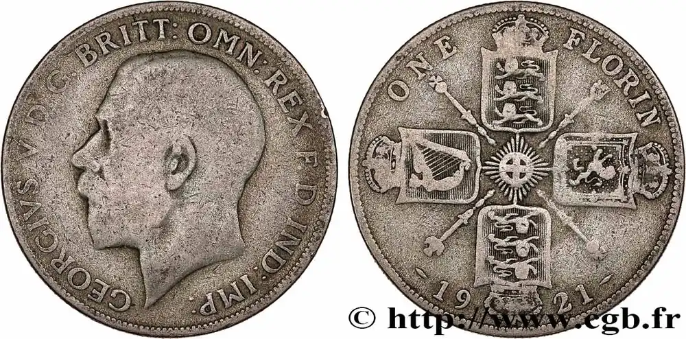 Type : 1 Florin Georges VDate : 1930Quantité frappée : 267000Métal : argentTitre en millième : 800 ‰Diamètre : 29 mmAxe des coins : 12 h.Poids : 11,25 g.Tranche : striéeRéférence ouvrage :KM20/18 AversTitulature avers : GEORGIVS V REX – IMPERATOR.Description avers : Buste couronné à gauche de Georges V.ReversTitulature revers : SOUTH. AFRICA -ZUID. AFRIKA. FLORIN. 19 – 30.Description revers : Armes.HistoriqueAFRIQUE DU SUD