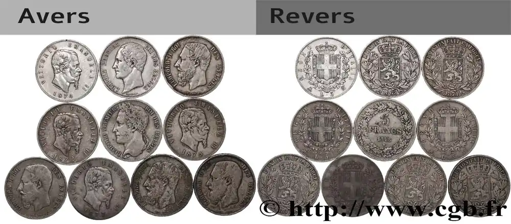 Type : Lot de 10 écus de 5 Francs Union LatineDate : n.d.Métal : argentTitre en millième : 900 ‰Diamètre : 37,5 mmAxe des coins : 6 h.Poids : 250 g.Tranche : en reliefRéférence ouvrage :KM.19/- AversReversHistoriqueARGENT D’INVESTISSEMENTL’argent d’investissement constitue une alternative accessible et fiable pour diversifier votre épargne. En tant que métal précieux tangible, il offre une protection contre l’inflation et les incertitudes économiques. Les monnaies d’argent d’investissement proposées par CGB Numismatique Paris permettent de combiner investissement et collection.Parmi nos références populaires, découvrez des classiques comme les 50 Francs Hercule, les Maple Leafs Canadiennes, ou encore les Philarmoniques Autrichiennes. Disponibles en différentes quantités, elles s’adaptent à votre budget et à vos objectifs.Un processus simple et sécurisé :Nous proposons une livraison sécurisée et garantie. Les paiements peuvent être effectués par carte bancaire ou par virement, bien que certaines transactions puissent nécessiter un règlement exclusivement par virement bancaire. Une pièce d’identité valide (carte nationale d’identité ou passeport) sera demandée pour finaliser votre achat.Stockage en toute sécurité et confidentialité :Le département Investissement de CGB Numismatique Paris met à votre disposition des solutions de stockage offrant une sécurité renforcée et une confidentialité optimale pour vos achats en or, palladium et platine.Contactez-nous pour plus d’informations :Pour toute question ou pour passer commande, prenez contact avec notre responsable des achats/ventes de métaux précieux : par email à [email protected] ou par téléphone. Nous mettons à votre disposition des informations générales et des services pour vous accompagner dans vos projets d’investissement.CGB Numismatique Paris agit en tant que fournisseur de métaux précieux et ne fournit aucun conseil en investissement. La valeur des métaux précieux peut fluctuer, et les performances passées ne garantissent pas les résultats futurs. L’achat de métaux précieux doit être considéré comme une stratégie de préservation de valeur plutôt qu’un investissement spéculatif. Conformément à l’article L.221-28 du Code de la consommation, le droit de rétractation ne s’applique pas aux achats d’argent d’investissement, dont le prix dépend des fluctuations des marchés financiers.