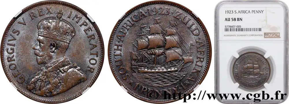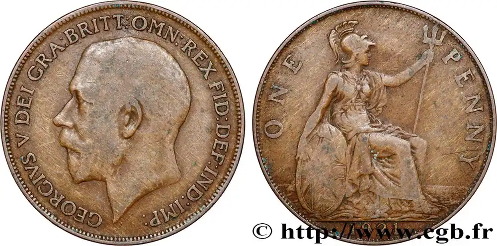 Type : 1 Penny Georges VDate : 1919Nom de l’atelier/ville : MelbourneQuantité frappée : 5810000Métal : bronzeDiamètre : 30,5 mmAxe des coins : 12 h.Poids : 9,43 g.Tranche : lisseRéférence ouvrage :KM20/23 AversTitulature avers : GEORGIVS V D.G.BRITT: OMN:REX F.D.IND:IMP:.Description avers : portrait couronné à gauche de Georges V.ReversTitulature revers : COMMONWEALTH OF AUSTRALIA / . 1919..Description revers : inscription sur deux ligne : ONE / PENNY.HistoriqueAUSTRALIE