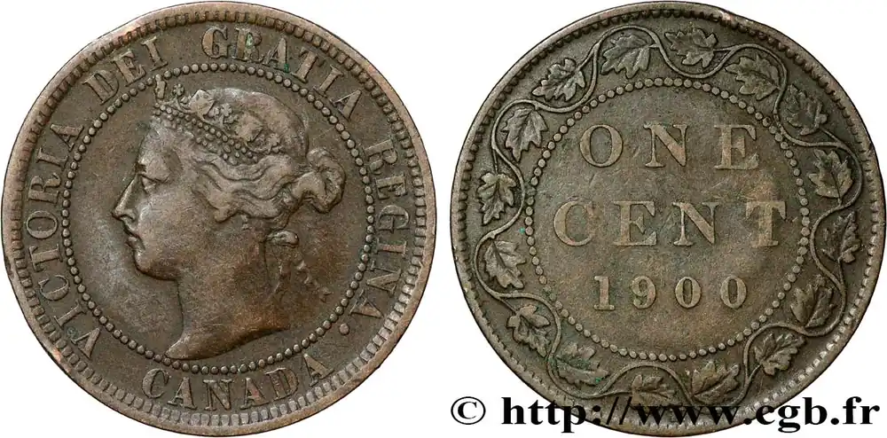 Type : 1 Cent VictoriaDate : 1896Quantité frappée : 2000000Métal : bronzeDiamètre : 25,5 mmAxe des coins : 12 h.Poids : 5,65 g.Tranche : lisseCommentaires sur l’état de conservation :coupsur trancheRéférence ouvrage :KM.19/7 AversTitulature avers : VICTORIA DEI GRATIA REGINA CANADA.Description avers : Tête couronnée à gauche de la reine Victoria.ReversTitulature revers : ONE / CENT / 1896 / H.Description revers : Légende sur trois lignes dans un cercle perlé.HistoriqueCANADAC’est le 15 février 1965, sur la colline du Parlement à Ottawa, que se déroule la cérémonie d’inauguration du drapeau canadien, en présence du gouverneur général Georges Vanier, du premier ministre Lester B. Pearson et des membres du Cabinet, ainsi que de milliers de citoyens. On descend d’abord le Red Ensign, portant l’Union Jack et l’écu des armoiries royales du Canada. Puis, sur le coup de midi, on hisse l’unifolié. La foule entonne ensuite l’hymne national O Canada suivi de l’hymne royal God save the Queen. Les paroles prononcées ce jour-là par Maurice Bourget, président du Sénat, donnent un sens encore plus symbolique à ce drapeau : « Le drapeau est le symbole de l’unité de la nation, car il représente sans l’ombre d’un doute tous les citoyens du Canada, sans distinction de race, de langue, de croyance ou d’opinion ».Deuxième pays du monde par sa superficie, le Canada occupe la majeure partie de l’Amérique du Nord. Il s’étend d’est en ouest de l’océan Atlantique à l’océan Pacifique et vers le nord jusqu’à l’océan Arctique et il partage deux frontières avec les États-Unis au sud et au nord-ouest (Alaska). D’abord occupé par les peuples autochtones, le pays est né de l’union de trois colonies britanniques, lesquelles étaient des colonies françaises au temps de la Nouvelle-France. Aujourd’hui c’est un État fédéral de dix provinces et trois territoires. Le Canada a obtenu son indépendance du Royaume-Uni pacifiquement dans un processus qui s’est étalé de 1867 à 1982.