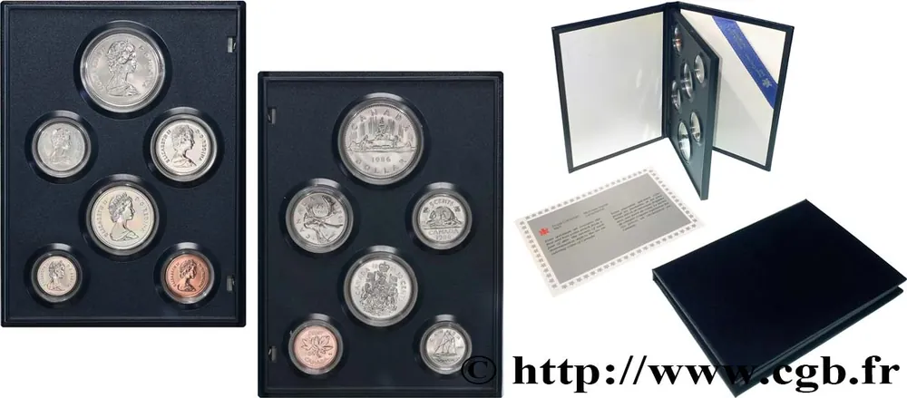 Type : Série 6 monnaiesDate : 1973Quantité frappée : 243695Diamètre : – mmAxe des coins : 12 h.Tranche : -Référence ouvrage :KM20/PL24 AversReversCommentaireCe coffret comprend un ensemble de 6 monnaies à l’effigie de la reine Élisabeth II :- 1 Cent en bronze- 5 Cents en cupro-nickel- 10, 25 et 50 Cents en nickel- 1 Dollar en nickel : centenaire de l’entrée de l’Île-du-Prince-Édouard comme province canadienne.HistoriqueCANADAC’est le 15 février 1965, sur la colline du Parlement à Ottawa, que se déroule la cérémonie d’inauguration du drapeau canadien, en présence du gouverneur général Georges Vanier, du premier ministre Lester B. Pearson et des membres du Cabinet, ainsi que de milliers de citoyens. On descend d’abord le Red Ensign, portant l’Union Jack et l’écu des armoiries royales du Canada. Puis, sur le coup de midi, on hisse l’unifolié. La foule entonne ensuite l’hymne national O Canada suivi de l’hymne royal God save the Queen. Les paroles prononcées ce jour-là par Maurice Bourget, président du Sénat, donnent un sens encore plus symbolique à ce drapeau : « Le drapeau est le symbole de l’unité de la nation, car il représente sans l’ombre d’un doute tous les citoyens du Canada, sans distinction de race, de langue, de croyance ou d’opinion ».Deuxième pays du monde par sa superficie, le Canada occupe la majeure partie de l’Amérique du Nord. Il s’étend d’est en ouest de l’océan Atlantique à l’océan Pacifique et vers le nord jusqu’à l’océan Arctique et il partage deux frontières avec les États-Unis au sud et au nord-ouest (Alaska). D’abord occupé par les peuples autochtones, le pays est né de l’union de trois colonies britanniques, lesquelles étaient des colonies françaises au temps de la Nouvelle-France. Aujourd’hui c’est un État fédéral de dix provinces et trois territoires. Le Canada a obtenu son indépendance du Royaume-Uni pacifiquement dans un processus qui s’est étalé de 1867 à 1982.