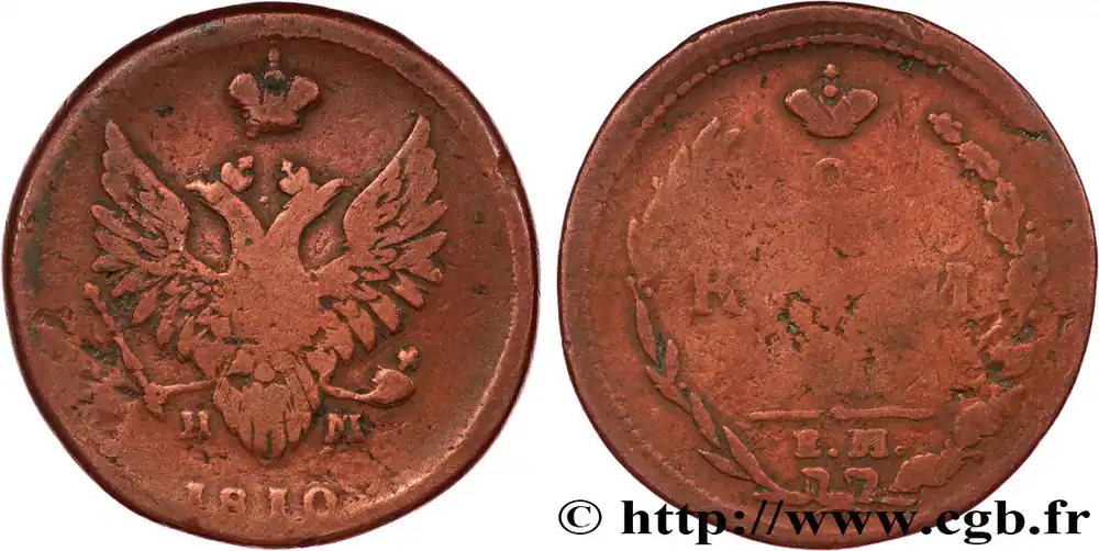 Type : 2 Kopecks aigle bicéphaleDate : 1886Nom de l’atelier/ville : Saint-PetersbourgQuantité frappée : 3123000Métal : cuivreDiamètre : 24 mmAxe des coins : 12 h.Poids : 6,18 g.Tranche : striéeCommentaires sur l’état de conservation :coups sur trancheRéférence ouvrage :KM.19/10.2 AversTitulature avers : (LÉGENDE EN CYRILLIQUE) МѢДНАЯ РОССІЙСКАЯ МОНЕТА // ДВѢ КОПѢЙКИ.Description avers : Aigle bicéphale couronné.Traduction avers : (Monnaie de cuivre russe // Deux Kopecks).ReversTitulature revers : (LÉGENDE EN CYRILLIQUE) 18864 ГОДА / *2* / КОПѢЙКИ / С.П.Б..HistoriqueRUSSIE