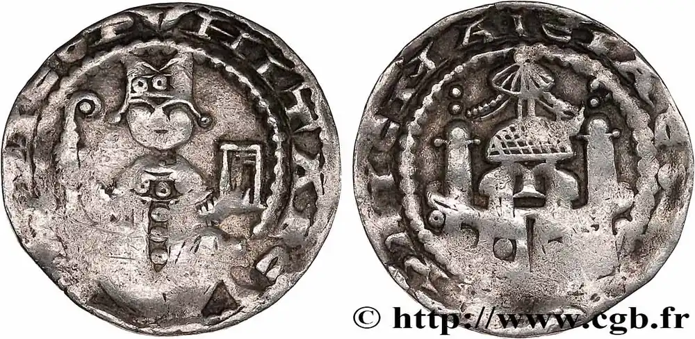 Type : DenierDate : c. 1149-1163Date : n.d.Nom de l’atelier/ville : AntiocheMétal : argentDiamètre : 17 mmAxe des coins : 3 h.Poids : 0,94 g.Degré de rareté : R1Commentaires sur l’état de conservation :Ce denier est frappé sur un flan irrégulier présentant des faiblessesRéférence ouvrage :Bd.- – CCS.61 varAversTitulature avers : + BOAHVHDVS, (O POINTÉ ET A PERLÉ AVEC DEUX BARRES).Description avers : Tête à gauche de Bohémond entre un croissant et une étoile.Traduction avers : (Bohémond).ReversTitulature revers : + ANTIOCHIA, (A PERLÉS).Description revers : Croix cantonnée au 2 d’un croissant.Traduction revers : (Antioche).HistoriqueCROISADES – PRINCIPAUTÉ D’ANTIOCHE – BOHÉMOND III(1149-1201) Antioche fut la première grande cité à tomber entre les mains des Croisés en 1098. Bohémond de Tarente et Robert Guiscard, des Normands, se constituèrent une première principauté. Raymond II de Poitiers, prince d’Antioche, fut tué en 1149 à la fin de la deuxième croisade. Bohémond III, son fils, lui succéda sous la régence de Constance, sa mère, la fille de Bohémond II, entre 1149 et 1163. Après la prise de Jérusalem en 1187, Bohémond signa une trêve avec Saladin et fit la paix avec les musulmans à partir de 1192. Il annexa Tripoli en 1187 et dut lutter contre la montée des rois d’Arménie. Raymond, son fils aîné, mourut en 1197. Quand Bohémond III mourut en 1201, une lutte implacable allait opposer ses descendants, Raymond Roupen dit l’Arménien, son petit-fils, et Bohémond IV, fils cadet de Bohémond III .