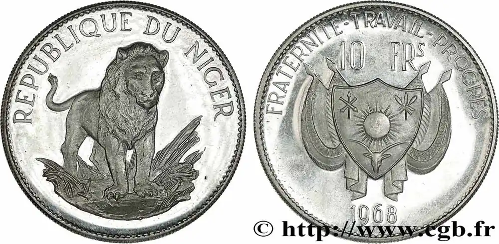 Type : 10 FrancsDate : 2004Nom de l’atelier/ville : ParisQuantité frappée : -Métal : bronze-aluminiumDiamètre : 23,5 mmAxe des coins : 6 h.Poids : 3 g.Tranche : lisseRéférence ouvrage :KM20/23 AversTitulature avers : REPUBLIQUE DE DJIBOUTI / 2004.Description avers : Bouclier, lance et deux poignards, sous une étoile et entourés d’une couronne de laurier.ReversTitulature revers : UNITE . EGALITE . PAIX / 20 – FRANCS.Description revers : Paquebot à quai devant une grue, cotres.HistoriqueDJIBOUTI(1977-) La République de Djibouti correspond à l’ancien territoire colonial français constitué autour du golfe de Tadjourah dans la corne de l’Afrique. Le territoire d’Obock et dépendances est constitué par la France en 1862. En 1896, le territoire est rebaptisé Côte française des Somalis puis en 1967 Territoire français des Afars et des Issas. En 1977, l’indépendance est proclamée.