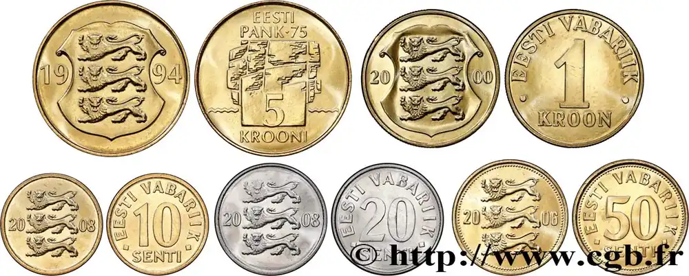 Édition Limitée ESTONIE Lot de 5 monnaies 10, 20 & 50 Senti, 1 Kroon, 5 Krooni 1994-2008 Tallinn fwo_756913 Monde